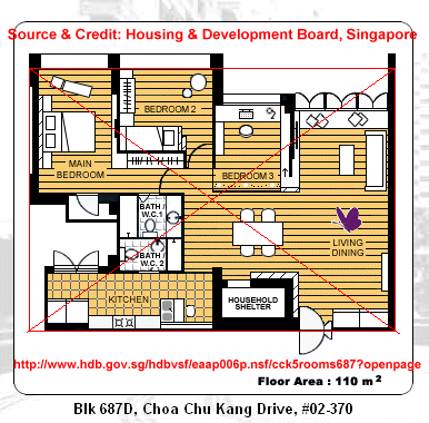 Overall, under Shapes and forms Feng shui, unit at Blk 687D seems much better. Especially since the household shelter is not right smack in the middle of the `living' room/dining/kitchen area.
